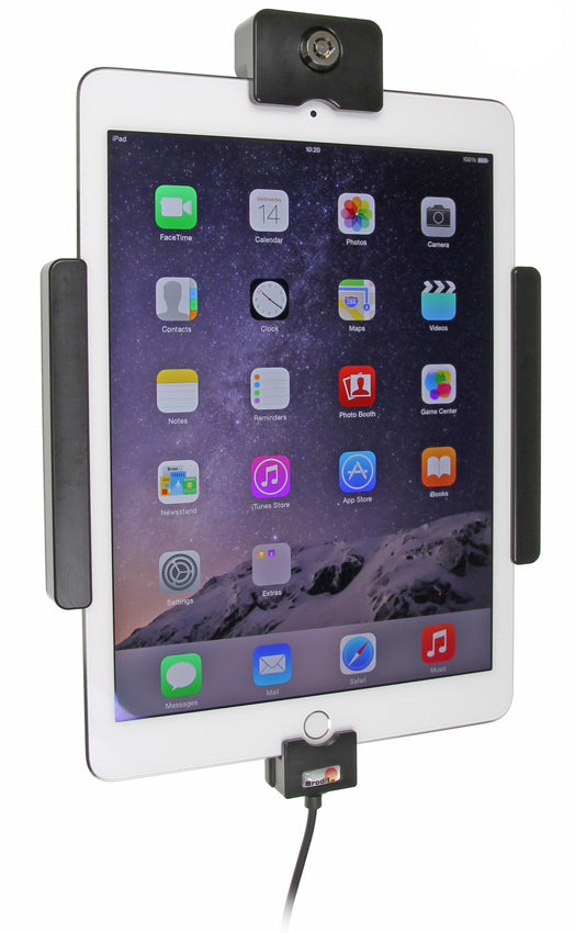 A Brodit határozottan nem ajánlja ezt a típusú rögzítési formát! Az autó műszerfalára rögzített tablet az ügyfél saját döntése, az ő felelőssége. A Brodit a fejtámlára való rögzítést javasolja, a fejtámlára rögzíthető állvány segítségével.