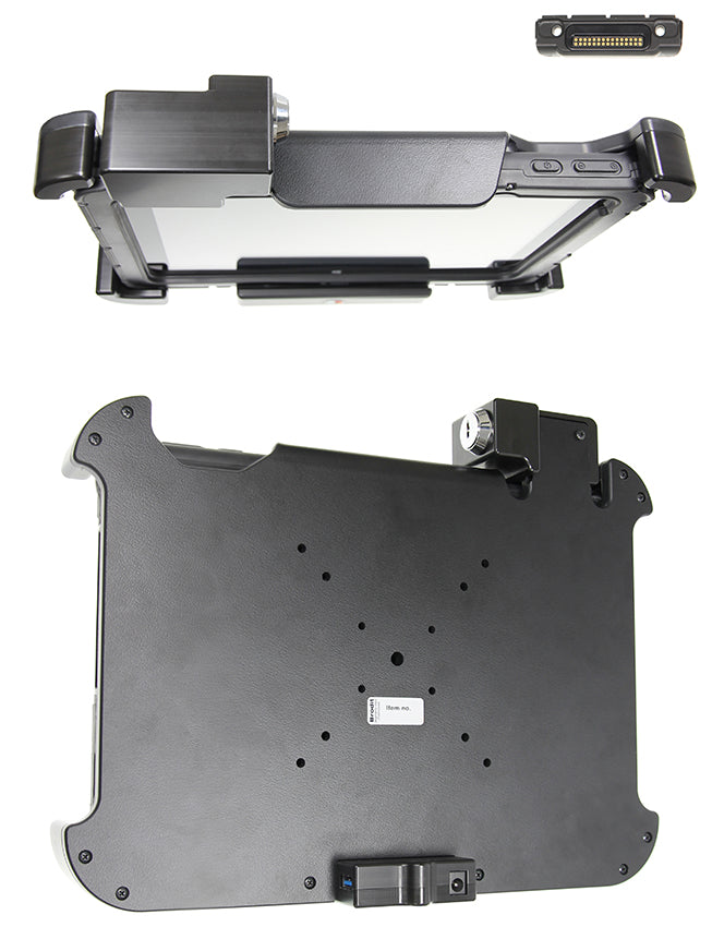 This holder is the perfect choice when you want to have your device securely locked in place and still easy accessible. Custom fit for devices with rugged frame ( NOT for expansion module/handstrap). The holder has an extra robust design for an extra secure fit and is equipped with a lock. In order to remove the device from the holder you need a key (two keys are included). Attach the holder to any flat surface or a Pedestal Mount in a truck, distribution vehicle, warehouse etc. Predrilled AMPS and VESA standard holes. You have full access to the camera and all buttons and outlets when the device is in the holder.