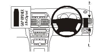 Figyelem! Összeszerelés előtt kérjük, figyelmesen olvassa el a használati utasítást és nézze meg az ábrákat, mielőtt rögzíti a ProClip-et! 1. Nyomja a mellékelt réstágítót a műszerfal és a panel közé, hogy kitágítsa a rést. 2. Nyomja a ProClip alsó, hajlított részét a résbe, közvetlenül a réstágító mellett. Nyomja amíg nem érzi, hogy a helyére ugrott. Húzza ki a réstágítót. 3. Nyomja a réstágítót a légrács kerete és a műszerfal közé. Nyomja a ProClip felső, hajlított részét a résbe, közvetlenül a réstágító mellett. Nyomja amíg nem érzi, hogy a helyére ugrott. Húzza ki a réstágítót. 4. A ProClip a helyére került. |