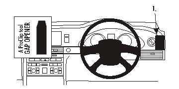 Figyelem! Összeszerelés előtt kérjük, figyelmesen olvassa el a használati utasítást és nézze meg az ábrákat, mielőtt rögzíti a ProClip-et! 1. Nyomja a mellékelt réstágítót a műszerfalon lévő résbe, hogy kitágítsa a rést. Távolítsa el az öntapadó felület borítását a ProClip. 2. Nyomja a ProClip felső, hornyos élét a réstágító alatti résbe. 3. Nyomja előre a ProClip alsó részét, hogy a hornyos rész teljesen belemenjen a résbe. Nyomja amíg nem érzi, hogy a helyére ugrott. Húzza ki a réstágítót. 4. A ProClip a helyére került. |