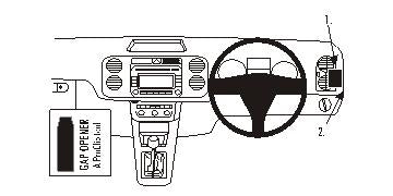 Figyelem! Összeszerelés előtt kérjük, figyelmesen olvassa el a használati utasítást és nézze meg az ábrákat, mielőtt rögzíti a ProClip-et! 1. Nyomja a mellékelt réstágítót a műszerfal és a légrács körüli keret közé, hogy kitágítsa a rést. Távolítsa el az öntapadó felület borítását a ProClipen. 2. Nyomja a ProClip lekerekített jobb oldalát a résbe a réstágító alatt. 3. Nyomja a ProClipet balra, hogy a lekerekített jobb él beakadjon a légrács körüli keret mögé. Nyomja a ProClip bal oldalát előre, hogy a ProClip hajlított bal éle beakadjon a műszerfal oldalán lévő résbe. Húzza ki a réstágítót. 4. A ProClip a helyére került. |