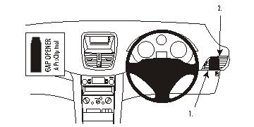 Figyelem! Összeszerelés előtt kérjük, figyelmesen olvassa el a használati utasítást és nézze meg az ábrákat, mielőtt rögzíti a ProClip-et! Fontos, hogy a ProClipet a képen látható módon helyezze el. 1. Távolítsa el az öntapadó felület borítását a ProClipen. Nyomja a mellékelt réstágítót a képen látható módon, a légrács alá, hogy együtt álljon a légrács jobb élével, és helyezze a ProClipet közvetlenül a réstágító bal oldalára. 2. Tartsa a ProClipet ugyan úgy miközben a réstágítót nyomja befelé a műszerfal és a légrács körüli keret közé, hogy kitágítsa a rést közvetlenül a ProClip mellett. Nyomja a ProClip alsó, hajlított részét a résbe, közvetlenül a réstágító mellett. Húzza ki a réstágítót. 3. Helyezze a réstágítót a műszerfal és a légrács körüli keret közötti résbe. Nyomja előre a ProClip felső részét, hogy a hajlított felső él beakadjon a résbe, közvetlenül a réstágító mellett. Nyomja lefelé a ProClip tetejét , hogy a hajlított él teljesen belemenjen a résbe. Húzza ki a réstágítót. 4. A ProClip a helyére került. |