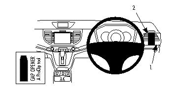 Mielőtt elkezdené a telepítést, kérjük, tekintse meg a képeket és figyelmesen olvassa el a használati útmutatót! 1. A mellékelt alkoholos kendő segítségével tisztítsa meg azt a területet, ahová a ProClip kerülni fog. Távolítsa el az öntapadó matricákat a ProClipről. Helyezze a ProClipet a műszerfal szellőzőnyílása fölé, így a ProClip vékonyabbik fele a műszerfal két része közé fog illeszkedni. Nyomja lefelé a ProClipet, így a vékonyabbik fele minden irányból a résbe fog illeszkedni. 2. Nyomja a mellékelt réstágító vékonyabbik felét a műszerfal és a szellőzőrács kerete közé, így kiszélesíti azt. Húzza meg a ProClip felső részét, így az felfelé fog hajlani és a meghajlított él be fog akadni a résbe, a réstágító mellé. 3. Nyomja határozottan lefelé a ProClip tetejét, győződjön meg róla, hogy a meghajlított él minden irányból illeszkedik a résbe. Húzza ki a réstágítót. 4. A ProClip a helyére került. |