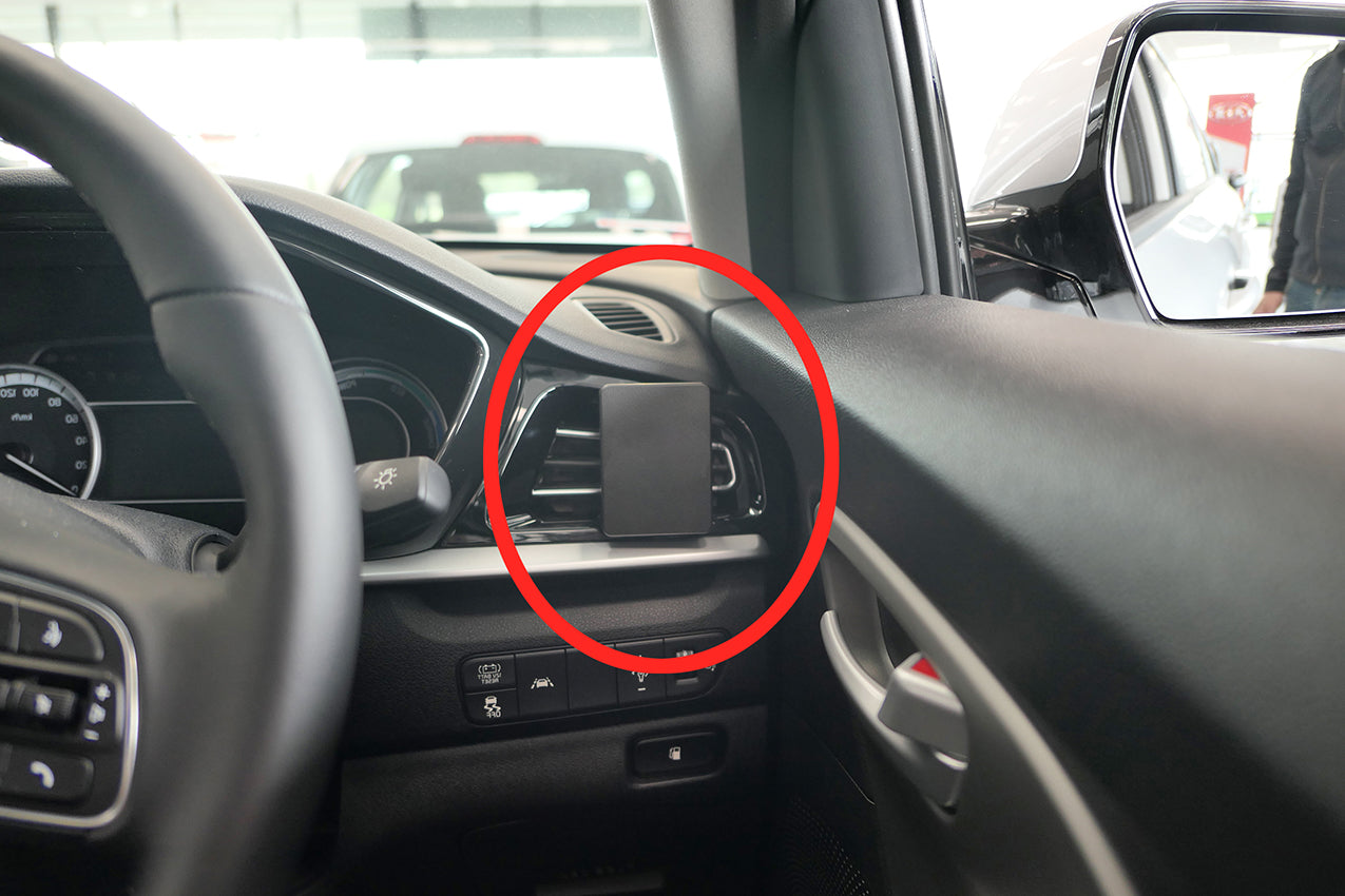 1. A mellékelt alkoholos párnával tisztítsa meg azt a felületet, ahová kerülni fog a ProClip. Távolítsa el a ragasztócsík borítását a ProClipről. Akassza a ProClip alsó élét a szellőzőnyílást körülvevő keretbe.