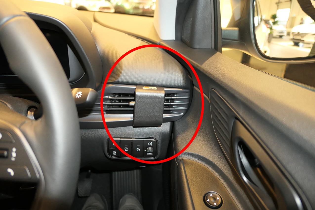 3. Akassza a ProClip felső részét a szellőzőnyílást körülvevő keret és a műszerfal közötti résbe. Nyomja lefelé a ProClip tetejét, hogy a felső éle teljesen bemenjen a résbe.
