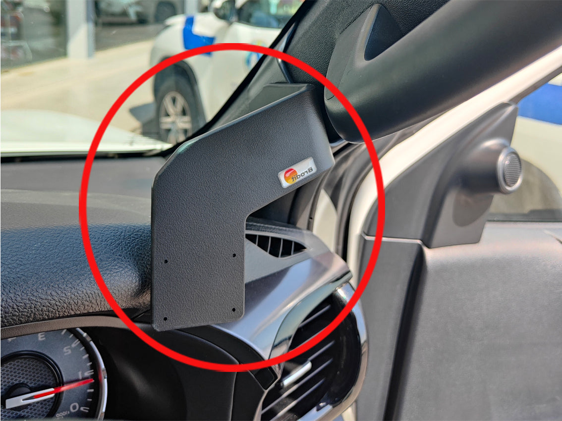 Mielőtt a ProClipet rögzítené, kérjük, tekintse meg a képeket és figyelmesen olvassa el a használati útmutatót! 1. Tisztítsa meg azt a felületet, ahová kerülni fog a ProClip a mellékelt alkoholos párnával. Távolítsa el a ragasztócsík borítását a ProClipről. Húzza ki az A-oszlopnál található gumitömítést. 2. Nyomja a ProClip alsó élét a résbe és akassza az A-oszlop köré. 3. Nyomja a ProClipet felfelé/előre, hogy a felső éle az A-oszlop köré akadjon. 4. A ProClip a helyére került. |