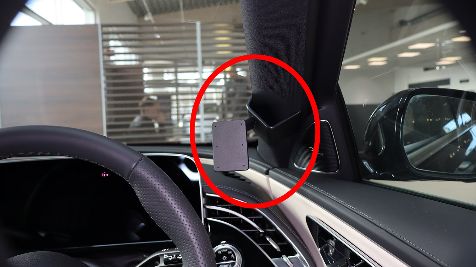 2. Nyomja felfelé/előre a tartót, és akassza a felső ferde szélét az A-oszlop fölé.
