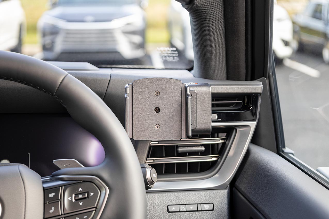 2. Press forward on the bottom of the mount until the lower lip clips into the air vent housing.