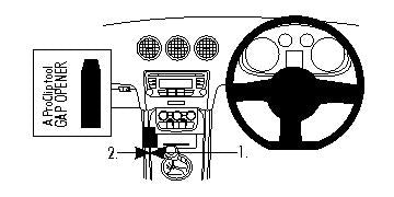 Kérjük, figyelmesen olvassa el a használati utasítást és nézze meg az ábrákat, mielőtt rögzíti a ProClip-et! 1. A mellékelt réstágító keskeny végét nyomja a sebességváltót körülvevő panel és a padlón található konzol kerete közötti résbe, hogy kitágítsa azt! 2. Nyomja a ProClip bal oldali részének barázdált szegélyét a réstágító mellett a résbe! Addig nyomja, amíg meg nem látja vagy hallja/érzi, hogy bekattant a helyére! Húzza ki a réstágítót! 3. Nyomja a réstágítót a padlón található konzol keretén lévő résbe! Nyomja a ProClip-et jobbra úgy, hogy annak jobb oldali, barázdált szegélye a réstágító mellett a résbe kerüljön! Addig nyomja, amíg meg nem látja vagy hallja/érzi, hogy bekattant a helyére! Húzza ki a réstágítót! 4. A ProClip a helyére került. |