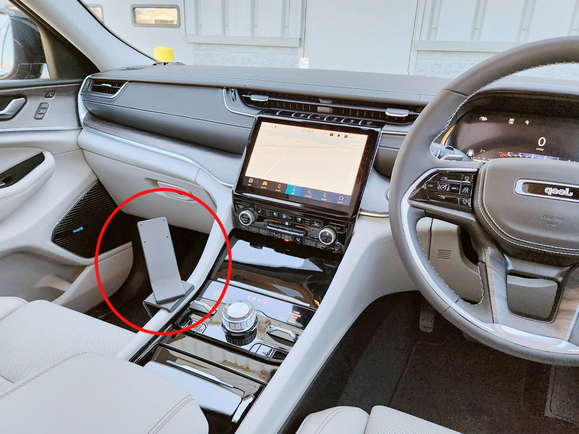 3. Nyomja lefelé a ProClip bal oldalát úgy, hogy a szögletes bal él a középkonzol oldalfala alá akadjon.