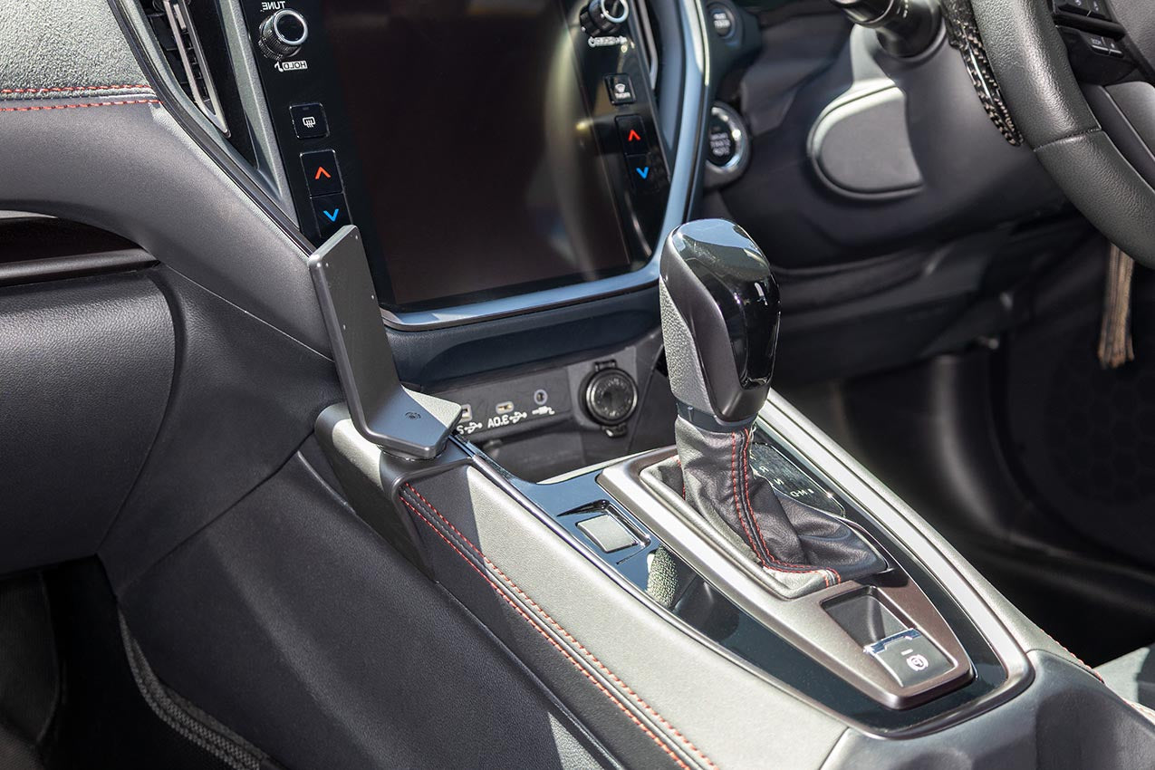 1. Nyomja be a mellékelt résnyitó vékony végét a résbe a középkonzol oldalfalán, hogy kiszélesítse a rést. Akassza be a tartó alsó részén lévő szögletes élét a résbe a résnyitó mellett. Húzza ki a résnyitót.