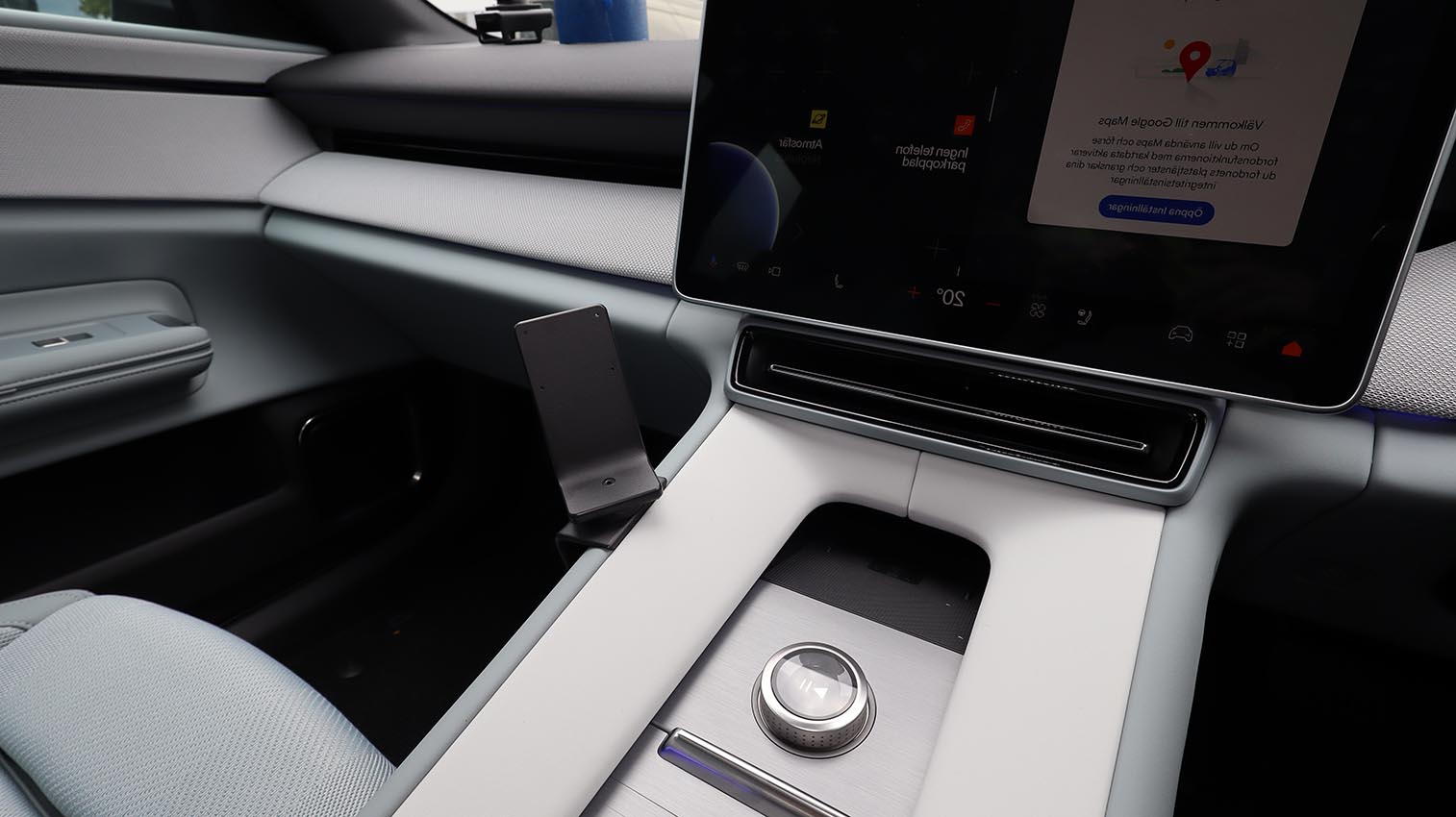 2. Nyomja a résnyitót a középkonzol teteje és a középkonzol oldalfala közötti résbe. Húzza fel a tartó felső élét, és emelje át a konzol széle fölött anélkül, hogy hozzáérne. Akassza be a tartó felső szögletes élét a résnyitó melletti résbe. Nyomja lefelé a tartó tetejét, hogy a szögletes él teljesen a résbe kerüljön. Húzza ki a résnyitót.