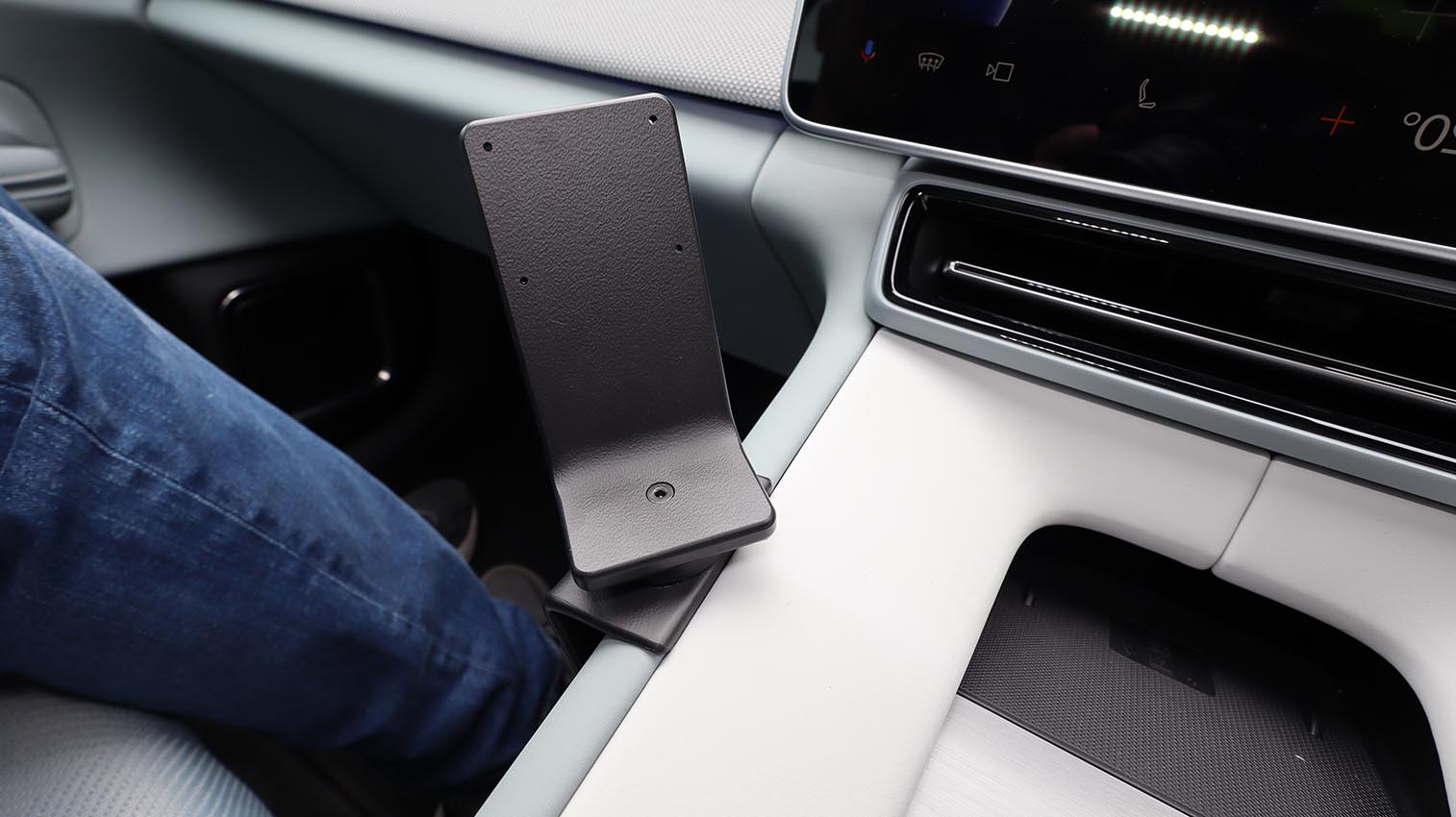 3. Helyezze a mellékelt rögzítő alátétet a tartó tetején lévő mélyedésbe. Helyezze az előlapot a tartóra. Állítsa az előlapot a kívánt szögbe. Az előlap felszerelhető a vezető vagy az utas használatára. Rögzítse az előlapot a tartóhoz a mellékelt csavarral.