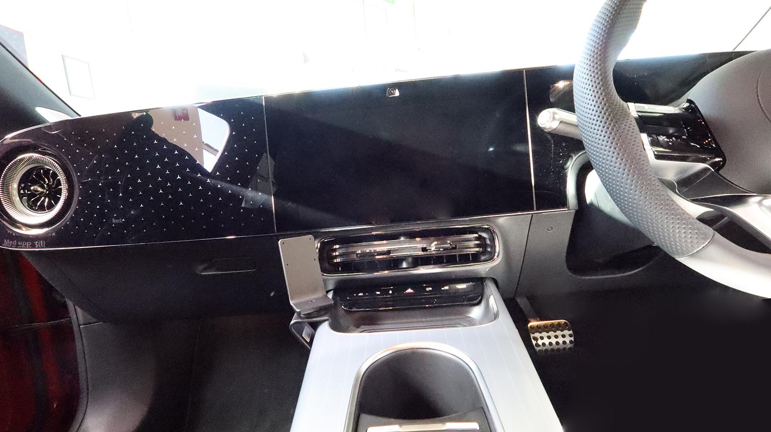 1. Press the thin end of the enclosed gap opener into the gap unde the console sidewall, to widen the gap. Use the enclosed alcohol pad to clean the area where the mount will be installed. Peel off the adhesive tape cover. Press the lower edge of the mount into the gap next to the gap opener. Pull out the gap opener.