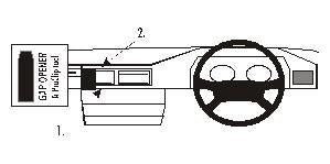 Kérjük, figyelmesen olvassa el a használati utasítást és nézze meg az ábrákat, mielőtt rögzíti a ProClip-et! 1. A mellékelt réstágító keskeny végét nyomja a központi konzol-panel és a műszerfal közötti résbe, hogy kitágítsa azt! 2. Nyomja a ProClip alsó részének szögletes szegélyét a réstágító mellett a résbe! Húzza ki a réstágítót! 3. Nyomja a ProClip-et felfelé és előre úgy, hogy annak barázdált szegélye bekattanjon a légbefúvó kerete és a párnázott műszerfal közötti résbe! Addig nyomja, amíg meg nem látja vagy hallja/érzi, hogy bekattant a helyére! 4. A ProClip a helyére került. |