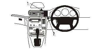 1. Press the upper part of the ProClip, with groove, into the gap between the air vent frame and the padded dashboard at pos.1. Press until you see or hear/feel it snap into place