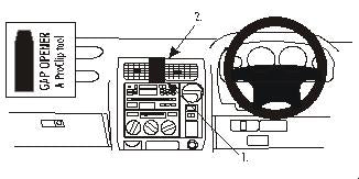Figyelem! Mielőtt a ProClip-et rögzítené, kérjük, figyelmesen olvassa el a használati útmutatót! 1. A mellékelt réstágító keskeny végének segítségével tágítsa ki a rést a 2-es pozícióban, a műszerfal és a szabályzó-panelt körülvevő keret között! Tisztítsa meg a felületet az 1-es és 2-es pozíciókban a mellékelt alkoholos párnával! Távolítsa el a ragasztócsíkok borításait a ProClip-ről! 2. Nyomja a ProClip alsó, szögletes részét a résbe a szabályzó-panel és az azt körülvevő keret között! 3. Nyomja előre a ProClip-et úgy, hogy a ProClip felső, szögletes része beakadjon a réstágító melletti résbe! Húzza ki a réstágítót! 4. A ProClip a helyére került. |