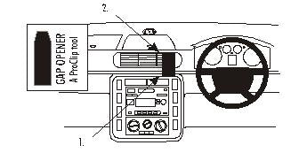 Figyelem! Mielőtt a ProClip-et rögzítené, kérjük, figyelmesen olvassa el a használati útmutatót! 1. Nyomja a mellékelt réstágító keskeny végét a résbe a műszerfal és a szabályzó-panelt körülvevő keret között! Távolítsa el a ragasztócsík borítását a ProClip-ről! 2. Nyomja a ProClip alsó részét a réstágító melletti résbe! 3. Nyomja a ProClip felső részét a ragasztócsíkkal a résbe a légbefúvó és az azt körülvevő keret között! Húzza ki a réstágítót! 4. A ProClip a helyére került. |