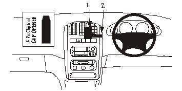 Figyelem! Mielőtt a ProClip-et rögzítené, kérjük, figyelmesen olvassa el a használati útmutatót! Távolítsa el a ragasztócsík borítását a ProClip-ről! 1. A mellékelt réstágító keskeny végének segítségével tágítsa ki a rést a légbefúvó háza és a légbefúvó kerete között! 2. Csúsztassa/akassza a ProClip jobb oldalának szögletes peremét a réstágítóval kitágított résbe! Húzza ki a réstágítót! 3. Nyomja előre a ProClip bal oldalát úgy, hogy a szögletes pereme kerüljön a résbe a párnázott műszerfal és a fabetétes panel között! Nyomja erősen, amíg érzékelhetően a helyére nem pattan! 4. A ProClip a helyére került. |