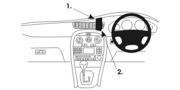1. Press the upper part of the ProClip into the gap between the dashboard and the panel surrounding the control panel. Press until you hear or see/feel it snap into place.