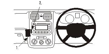 Figyelem! kérjük, figyelmesen olvassa el a használati utasítást és nézze meg az ábrákat, mielőtt rögzíti a ProClip-et! 1. Távolítsa el az öntapadó matricákat a ProClipről. A ProClip jobb felét helyezze a képen nyíllal jelölt helyre. 2. Helyezze a kezét a ProClip jobb oldalára, majd húzza a rádió felé addig, amíg a bal oldala a rádió és a középkonzol kerete közé nem kerül. Nyomja addig, amíg nem hallja/érzi, hogy a helyére került. 3. Tegye a kezét a ProClip bal oldalához, majd nyomja addig, amíg a helyére nem kerül. 4. A ProClip a helyére került. |