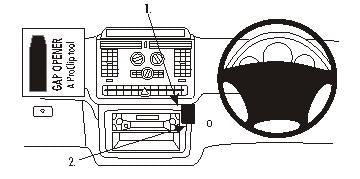 Figyelem! kérjük, figyelmesen olvassa el a használati utasítást és nézze meg az ábrákat, mielőtt rögzíti a ProClip-et! 1. A mellékelt réstágító keskeny végét nyomja a műszerfal és a központi panel közötti résbe, hogy kitágítsa azt! Távolítsa el a ProClip ragasztócsíkjának borítását! Igazítsa a ProClip-et az ábrán látható pozícióba! 2. Nyomja a ProClip felső részét a réstágító mellett a résbe! Húzza ki a réstágítót! 3. Nyomja a réstágítót a panel és a rádiót körülvevő keret közötti résbe! Nyomja a ProClip alsó részét előre úgy, hogy az teljesen a résbe kerüljön a réstágító mellett! Húzza ki a réstágítót! 4. A ProClip a helyére került. |