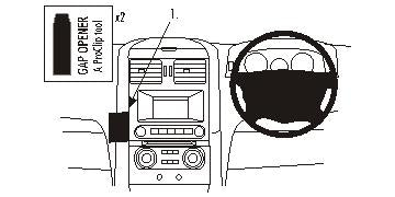 Please read all of the instructions and look at the pictures before attaching the ProClip. 1. Press the thin ends of the enclosed gap openers into the gap between the control panel and the surrounding frame, to widen the gap. Place the gap openers about 10 cm apart. Peel off the cover of the adhesive tape on the ProClip. 2. Press the grooved edge on the ProClip into the gap between the gap openers. 3. Press forwards on the ProClip until you hear/feel it snaps into place in the gap. Pull out the gap openers. 4. The ProClip is in place. |