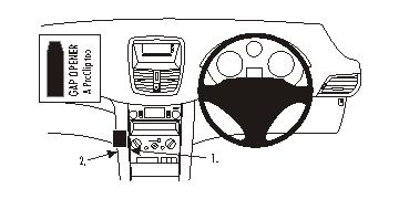 Kérjük, figyelmesen olvassa el az összes utasítást és tanulmányozza a képeket, mielőtt a ProClip-et rögzítené! 1. Helyezze a csomagban található réstágítót a vékony felével a vezérlő panel és a műszerfal közötti hézagba, hogy kitágítsa azt. Távolítsa el a ragasztócsík borítását a ProClipről. 2. Nyomja a ProClip bal oldalának barázdált szélét a résbe a réstágító fölé. Addig nyomja, amíg nem érzi/hallja, hogy a helyére kattan. Húzza ki a réstágítót. 3. Helyezze a réstágítót a vékony felével a vezérlőt körülvevő keret és a műszerfal közötti hézagba, hogy kitágítsa azt. Nyomja előre a ProClip jobb oldalát, hogy annak levékonyított széle bekattanjon a résbe a réstágító fölé. Húzza ki a réstágítót. 4. A ProClip a helyére került. |