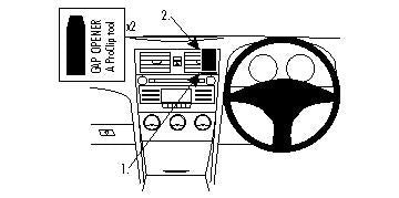 Kérjük, figyelmesen olvassa el az összes utasítást és tanulmányozza a képeket, mielőtt a ProClip-et rögzítené! 1. Helyezze a csomagban található réstágítókat a vékony felükkel a levegő befúvó panel kerete és a rádió közötti résbe, hogy kitágítsák azt. Távolítsa el a ProClip tapadó részét fedő borítást. Nyomja a ProClip alsó részénél barázdált szélét a résbe a réstágító mellé. Húzza ki a réstágítót. 2. helyezze mindkét réstágítót a vékony felével (a ProClip mindkét oldalánál) a műszerfal párnázott része és a levegőbefúvó panel kerete közötti résbe, hogy kitágítsák azt. Nyomja előre a hüvelykujjával a ProClip előlapjának felső részét, és ezzel együtt a ProClip tetejét nyomja lefelé a középső vagy a mutató ujjával, hogy annak levékonyított széle a hézagba menjen a réstágító mellé. Addig nyomja, amíg nem látja, hallja/érzi, hogy a helyére kattan. 3. Ezek után nyomja lefelé a ProClip jobb oldalának tetejét a középső, vagy a mutató ujjával, hogy annak levékonyított széle a résbe menjen a réstágító mellé. Húzza ki a réstágítókat. 4. A ProClip a helyére került. |