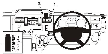 Kérjük, figyelmesen olvassa el az összes utasítást és tanulmányozza a képeket, mielőtt a ProClip-et rögzítené! 1. Helyezze a csomagban található réstágítót a vékony felével a levegő befúvó nyílás és az azt körülvevő keret közötti résbe, hogy kitágítsa azt. Távolítsa el a ragasztócsík borítását a ProClipről. 2. Nyomja a ProClip alsó részének lekerekített szélét a résbe a réstágító mellé. 3. Nyomja/nyomja a ProClip-et fölfelé/előre , hogy annak lekerekített alsó része beakadjon a levegő befúvó nyílás mögé és a ProClip levékonyított felső része pedig beakadjon a műszerfalon túlra. Nyomja lefelé a ProClip tetejét, hogy annak levékonyított széle beakadjon pontosan beakadjon a helyére és a tapadó rész meg tudjon ragadni. Húzza ki a réstágítót. 4. A ProClip a helyére került. |