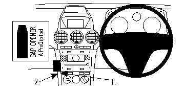 Kérjük, figyelmesen olvassa el az összes utasítást és tanulmányozza a képeket, mielőtt a ProClip-et rögzítené! 1. A mellékelt alkoholos párnával tisztítsa meg a felületet, ahová a ProClipet felszereli majd. Helyezze a csomagban található réstágítót a vékony felével a vezérlőpult és az azt körülvevő keret közötti résbe, hogy kitágítsa azt. Távolítsa el a ragasztócsík borítását a ProClipről. 2. Nyomja a ProClip jobb oldalának levékonyított szélét a résbe a réstágító fölé. Húzza ki a réstágítót. 3. Helyezze a réstágítót a középkonzol oldalfalába. Nyomja előre a ProClip bal oldalát, hogy annak levékonyított széle beakadjon a résbe a réstágító fölé. Nyomja a ProClip bal oldalát a középkonzol felé, hogy annak széle mindenképpen a résbe menjen. Húzza ki a réstágítót. 4. A ProClip a helyére került. |