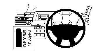 Kérjük, olvassa el az összes utasítást és tanulmányozza a képeket, mielőtt a tartót rögzítené! 1. A mellékelt réstágító segítségével tágítsa ki a rést a légbefúvó és a műszerfal kerete közt. A ProClipet az alsó részénél fogva nyomja a légbefúvó és a műszerfal kerete közé. 2. Csúsztassa a ProClipet addig, amíg nem hallja/érzi, hogy a helyére került. 3. Akassza be a ProClip felső részét a réstágító melletti résbe. Nyomja lefelé. Húzza ki a réstágítót. 4. A ProClip a helyére került. |