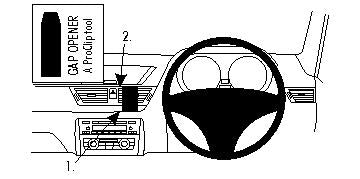 Mielőtt elkezdené a telepítést, kérjük, tekintse meg a képeket és figyelmesen olvassa el a használati útmutatót! 1. A mellékelt alkoholos kendő segítségével tisztítsa meg azt a területet, ahová a ProClip kerülni fog. A mellékelt réstágító segítségével tágítsa ki a rést a légbefúvó és a műszerfal kerete között. Távolítsa el az öntapadó matricákat a ProClipről. Az alsó részénél fogva helyezze a ProClipet a réstágító által kitágított rés mellé. Húzza ki a réstágítót. 2. Helyezze a réstágítót a légbefúvó kerete és a műszerfal közé. Nyomja a ProClip felső részét lefelé, amíg be nem akad a réstágító által kitágított rés mellé. 3. Nyomja addig, amíg teljesen a helyére nem kerül. Húzza ki a réstágítót. 4. A ProClip a helyére került. |