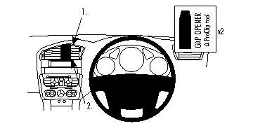 Mielőtt elkezdené a telepítést, kérjük, tekintse meg a képeket és figyelmesen olvassa el a használati útmutatót! 1. A mellékelt alkoholos kendő segítségével tisztítsa meg azt a területet, ahová a ProClip kerülni fog. Nyomja a réstágító vékonyabbik felét a szellőzőrács kerete és a műszerfal közti résbe, kiszélesítve azt. Távolítsa el az öntapadó matricákat a ProClipről. 2. Nyomja a ProClip felső részén található elhajlított élt a résbe, a réstágító mellé. Húzza ki a réstágítót. 3. Nyomja lefelé a ProClipet és akassza be az alsó élt a szellőzőrácsot körülvevő panel alá. 4. A ProClip a helyére került. |