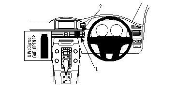 Mielőtt elkezdené a telepítést, kérjük, tekintse meg a képeket és figyelmesen olvassa el a használati útmutatót! 1. Nyomja a mellékelt réstágító vékonyabbik felét a szellőzőrács kerete és a műszerfal közti résbe, így kiszélesíti azt. 2. Nyomja a ProClip alsó felén található elgörbített élt a résbe, a réstágító mellé. Nyomja addig, amíg nem hallja/érzi, hogy az illeszkedett a helyére. Távolítsa el a réstágítót. 3. Nyomja a mellékelt réstágító vékonyabbik felét a szellőzőrács kerete és a műszerfal közti résbe, így kiszélesíti azt. Nyomja a ProClip alsó felén található elgörbített élt a résbe, a réstágító mellé. Nyomja felváltva előre a jobb és a bal oldalt a ProClip tetején. Nyomja addig, amíg nem hallja/érzi, hogy az illeszkedett a helyére. Távolítsa el a réstágítót. 4. A ProClip a helyére került. |