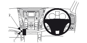 Mielőtt elkezdené a telepítést, kérjük, tekintse meg a képeket és figyelmesen olvassa el a használati útmutatót! 1. A mellékelt alkoholos kendő segítségével tisztítsa meg azt a területet, ahová a ProClip kerülni fog. Távolítsa el az öntapadó matricákat a ProClipről. Nyomja a ProClip alján található elgörbített élt a műszerfal és a középső konzol közti résbe. 2. Pattintsa felfelé/előre a ProClipet, így az elgörbített él be fog akadni a középső konzol mögé. 3. Akassza be a ProClip felső részén található meghajlított élt a műszerfal és kezelőpanel közti résbe. 4. A ProClip a helyére került. |