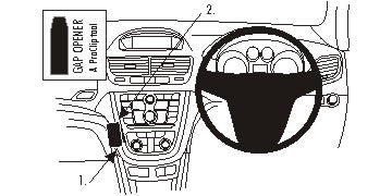 Mielőtt elkezdené a telepítést, kérjük, tekintse meg a képeket és figyelmesen olvassa el a használati útmutatót! 1. Nyomja a mellékelt réstágító vékonyabbik felét a középső konzol kerete és a műszerfal közti résbe, így kiszélesíti azt. A mellékelt alkoholos kendő segítségével tisztítsa meg azt a területet, ahová a ProClip kerülni fog. Távolítsa el az öntapadó matricát a ProClipről. Nyomja a ProClip jobb oldalát a résbe, a réstágító alá. 2. Nyomja előre a ProClipet ütközésig. Húzza ki a réstágítót. 3. Nyomja a réstágítót a kezelő panelt körülvevő keret és a középső konzol közti résbe. Akassza be a bal oldali meghajlított élt a résbe, a réstágító alá. Húzza ki a réstágítót. 4. A ProClip a helyére került. |