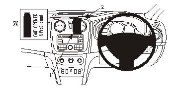 Please read all of the instructions and look at the pictures before attaching the ProClip. This ProClip can be placed on desired position along the width of the panel. 1. Use the enclosed alcohol pad to clean the area where the ProClip is to be installed. Press the enclosed gap openers into the gap surrounding the information display in the central control panel, to widen the gap. Remove the adhesive tape cover on the ProClip. Press both the gap openers downward to flex the panel outward. At the same time hook the curved bottom part of the ProClip into the gap next to the gap openers. Remove the gap openers. 2. Press the angled upper edge of the ProClip forward/upward into the gap between the central console panel and the dashboard. 3. Press downward on the upper part of the ProClip, making sure the adhesive tape really fastens. 4. The ProClip is in place. |