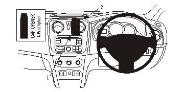 Mielőtt elkezdené a telepítést, kérjük, tekintse meg a képeket és figyelmesen olvassa el a használati útmutatót! Ezt a ProClipet rögzítheti a jobb oldalra is, de csak abban a formában, ahogy azt a képen látja. 1. A mellékelt alkoholos kendő segítségével tisztítsa meg azt a területet, ahová a ProClip kerülni fog. Nyomja a mellékelt réstágítót az információs kijelző és a középső konzol panele közti résbe, így kiszélesíti azt. Távolítsa el az öntapadós matricát a ProClipről. Nyomja a réstágítót lefelé, így a panel ki fog hajlani. Ezzel egy időben akassza a ProClip alsó részén található elgörbített részt a résbe, a réstágítók mellé. Húzza ki a réstágítókat. 2. Nyomja befelé/felfelé a ProClip alsó részét és győződjön meg róla, hogy az elgörbített vég tökéletesen beakadt a résbe. 3. Nyomja a ProClip felső részén található meghajlított élt előre/felfelé a középső konzol panele és a műszerfal közti résbe. 4. A ProClip a helyére került. |