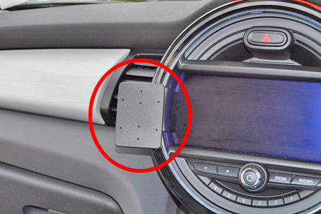 2. Push the left side of the ProClip forward, flexing it so the angled left edge hooks around the panel edge surrounding the air vent.