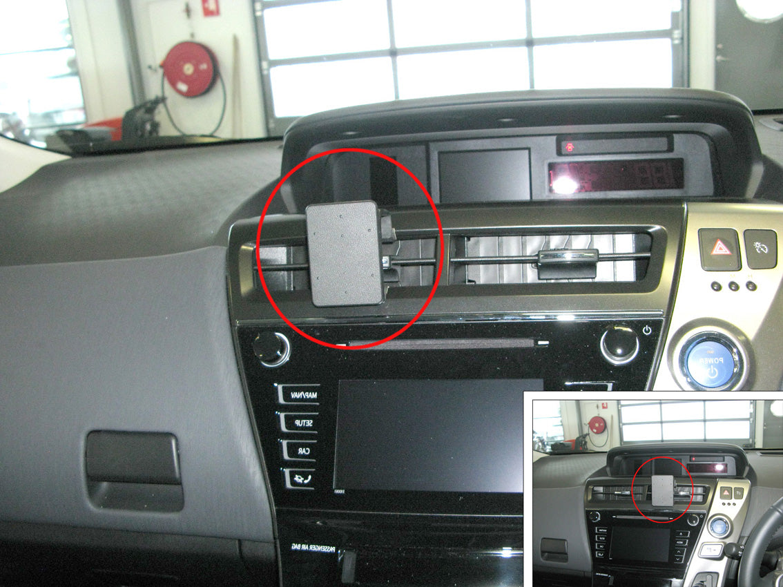 Mielőtt a ProClip-et rögzítené, kérjük, figyelmesen olvassa el a használati útmutatót! 1. Tisztítsa meg azt a felületet, ahová kerülni fog a ProClip a mellékelt alkoholos párnával. Távolítsa el a ragasztócsík borítását a ProClip-ről. Akassza a ProClip alsó részét a szellőzőnyílást körülvevő keret fölé. 2. Nyomja a ProClip felső részét lefelé és előre. Akassza a ProClip felső élét a szellőzőnyílást körülvevő keret alá. 3. Nyomja a ProClip felső részét felfelé és az alsó részét lefelé, hogy a ragasztócsík megfelelően illeszkedjen. 4. A ProClip a helyére került. Ez a ProClip a jobb oldali szellőzőnyílásra is helyezhető, feltéve, hogy a telepített eszköz nem blokkolja a műszerfalat. |