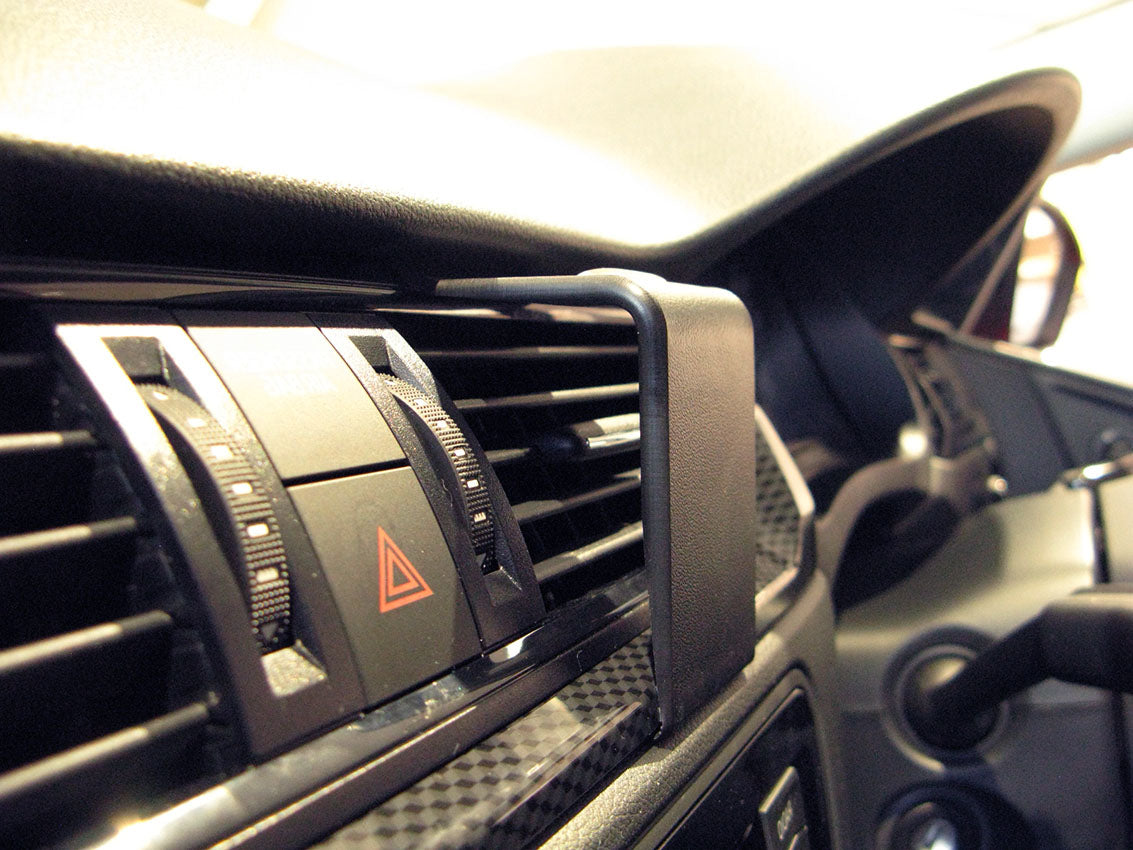 Mielőtt a ProClip-et rögzítené, kérjük, figyelmesen olvassa el a használati útmutatót! 1. Tisztítsa meg azt a felületet, ahová kerülni fog a ProClip a mellékelt alkoholos párnával. Távolítsa el a ragasztócsík borítását a ProClip-ről. Nyomja a ProClip felső élét felfelé/előre a résbe, a szellőzőnyílást körülvevő keret és a műszerfal túlnyúlás közé. 2. Nyomja a ProClip alsó részét előre, hogy az éle bemenjen a szellőzőnyílást körülvevő panel és a műszerfal között található résbe. 3. Nyomja előre/lefelé a ProClip alsó részét, hogy az éle teljesen bemenjen a résbe és a ragasztócsík megfelelően illeszkedjen. 4. A ProClip a helyére került. Ez a ProClip a jobb oldali szellőzőnyílásra is telepíthető. |