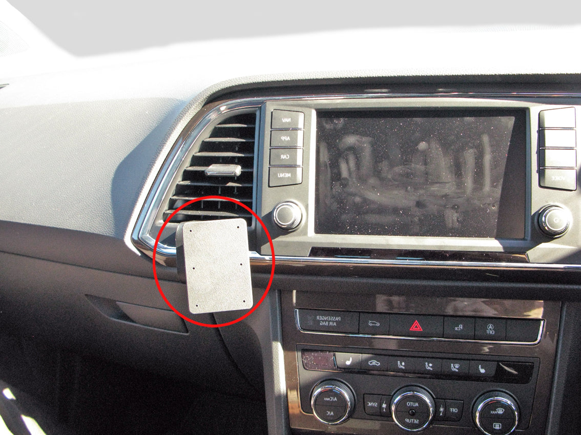 Mielőtt a ProClip-et rögzítené, kérjük, figyelmesen olvassa el a használati útmutatót! 1. Tisztítsa meg azt a felületet, ahová kerülni fog a ProClip a mellékelt alkoholos párnával. Távolítsa el a ragasztócsík borítását a ProClip-ről. Nyomja a ProClip alsó élét a középkonzol panelt és a műszerfal alsó élét szétválasztó résbe. 2. Nyomja a ProClip felső részét felfelé/előre és helyezze a szellőzőnyílás alsó élére. 3. Nyomja meg határozottan, hogy a ragasztócsík megfelelően tapadjon. 4. A ProClip a helyére került. |