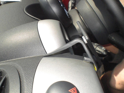 Mielőtt a ProClip-et rögzítené, kérjük, figyelmesen olvassa el a használati útmutatót! 1. Nyomja a mellékelt réstágító vékonyabbik végét a 2 műszerfal szakasz közötti résbe, hogy tágítsa a rést. Tisztítsa meg azt a felületet, ahová kerülni fog a ProClip a mellékelt alkoholos párnával. Távolítsa el a ragasztócsík borítását a ProClip-ről. 2. Helyezze/akassza a ProClip alsó részét a műszerfal keretének éle köré. 3. Nyomja előre a réstágító felső részét, hogy még jobban tágítsa a rést. Nyomja előre a ProClip felső részét, hogy az éle a résbe menjen, a réstágító mellé. Addig nyomja, amíg nem érzi/hallja, hogy a helyére kattant. Húzza ki a réstágítót. 4. A ProClip a helyére került. |