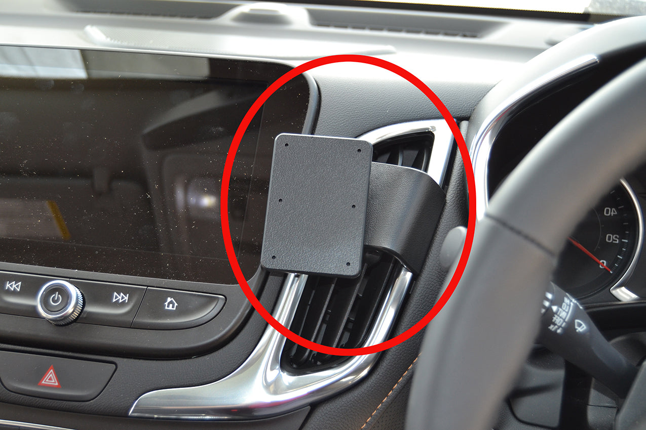 Mielőtt a ProClipet rögzítené, kérjük, figyelmesen olvassa el a használati útmutatót! 1. Tisztítsa meg azt a felületet, ahová kerülni fog a ProClip a mellékelt alkoholos párnával. Távolítsa el a ragasztócsík borítását a ProClipről. Nyomja a ProClip jobb élét a szellőzőnyílást körülvevő keret és a műszerfal közötti résbe. 2. Forgassa a ProClipet balra, ezzel egyidőben nyomja előre, hogy a jobb éle teljesen bemenjen a résbe és a műszerfal mögé akadjon. 3. Nyomja előre a ProClip bal oldalát, hogy a bal éle a szellőzőnyílást körülvevő keretbe akadjon. Nyomja előre a ProClipet, hogy a ragasztócsík megfelelően illeszkedjen. 4. A ProClip a helyére került. |