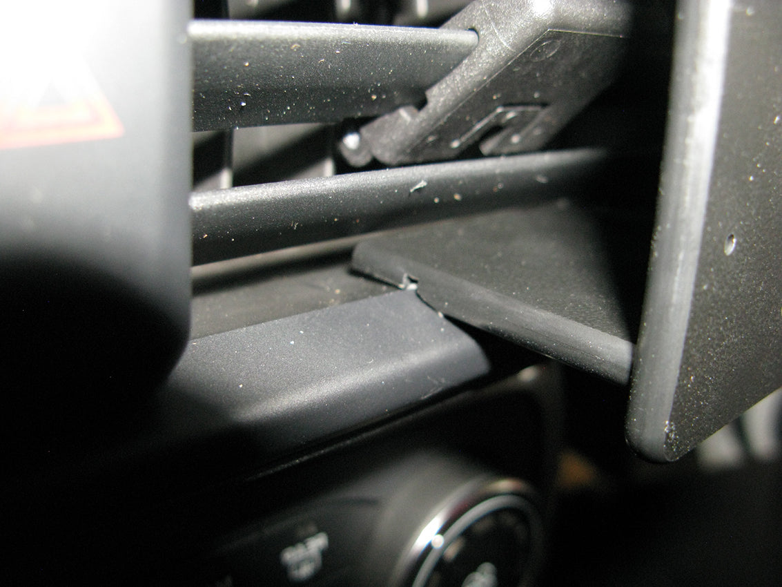 Mielőtt a ProClipet rögzítené, kérjük, figyelmesen olvassa el a használati útmutatót! 1. Tisztítsa meg azt a felületet, ahová kerülni fog a ProClip a mellékelt alkoholos párnával. Távolítsa el a ragasztócsík borítását a ProClipről. Helyezze a ProClip alsó részét a szellőzőnyílás alsó részébe, hogy a ragasztócsík alatt található barázda a szellőzőnyílást körülvevő keret sarkába akadjon. 2. Nyomja a ProClip felső részét előre, hogy a felső éle a szellőzőnyílást körülvevő keret alá akadjon. 3. Ezt a ProClipet a szellőzőnyílás szélességén belül bárhova elhelyezheti. 4. A ProClip a helyére került. |