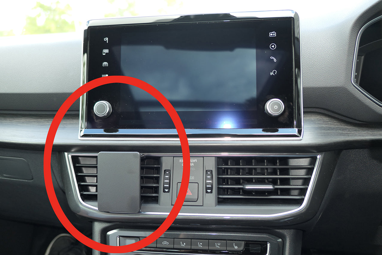 Mielőtt a ProClipet rögzítené, kérjük, tekintse meg a képeket és figyelmesen olvassa el a használati útmutatót! 1. Tisztítsa meg azt a felületet, ahová kerülni fog a ProClip a mellékelt alkoholos párnával. Távolítsa el a ragasztócsík borítását a ProClipről. Akassza a ProClip felső élét a szellőzőnyílást körülvevő keret alá. 2. Nyomja a ProClipet felfelé és előre, majd akassza az alsó élét a szellőzőnyílást körülvevő keretbe. 3. Ez a ProClip a jobb oldali szellőzőnyílásra is telepíthető. 4. A ProClip a helyére került. |