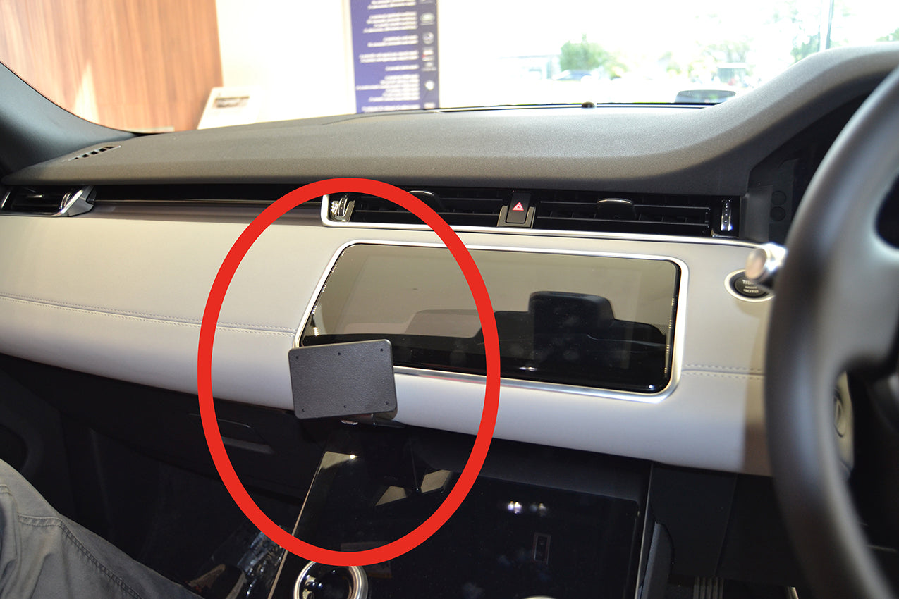 1. Insert the lower edge of the ProClip into the gap between the panel over the climate control and the padded dashboard. Press the ProClip forward and lift the upper part upward so the lower edge hooks behind the panel over the climate control.