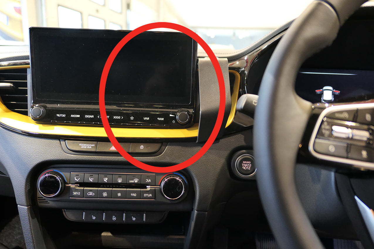 2. Nyomja a ProClipet felfelé és előre, majd akassza a felső élét a középkonzol kerete és a műszerfal felső része közötti résbe.