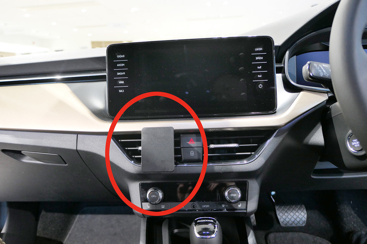 Please read all of the instructions and look at the pictures before attaching the ProClip. 1. Use the enclosed alcohol pad to clean the area where the ProClip is to be installed. Peel off the adhesive tape covers on the ProClip. Hook the grooved edge on the lower part of the ProClip over the frame surrounding the air vent. 2. Hook the grooved edge on the upper part of the ProClip under the frame surrounding the air vent. 3. This ProClip can also be attached onto the right air vent. A device installed in this position may block the display. 4. The ProClip is in place. |